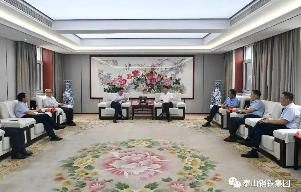 9月20日上午,日照市财金投资集团、齐鲁财金投资集团客人们来泰山钢铁集团交流。在办公楼贵宾室,泰山钢铁集团党委书记、董事长王永胜与日照市财金投资集团党委书记、董事长徐东高等领导进行了座谈交流。