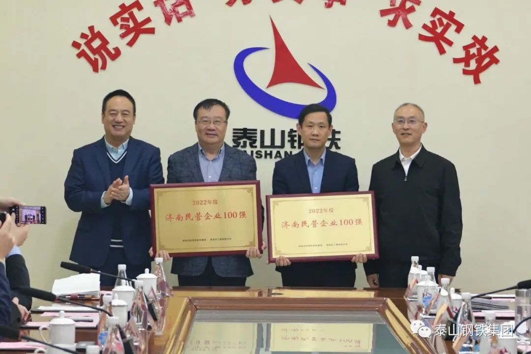 为深入学习贯彻党的二十大精神,毫不动摇鼓励、支持、引导非公有制经济发展,扎实做好为民营企业服务工作,10月26日,市工商联、市民营经济发展局、市仲裁委联合开展“济南民企百强”授牌仪式暨“仲裁服务进百企”走进泰山钢铁集团活动。市政协副主席、市工商联主席刘梦海,市民营经济发展局局长潘荣庆,济南仲裁委主任衣光军等领导出席活动并讲话。泰山钢铁集团党委书记、董事长王永胜参加活动并致欢迎词。