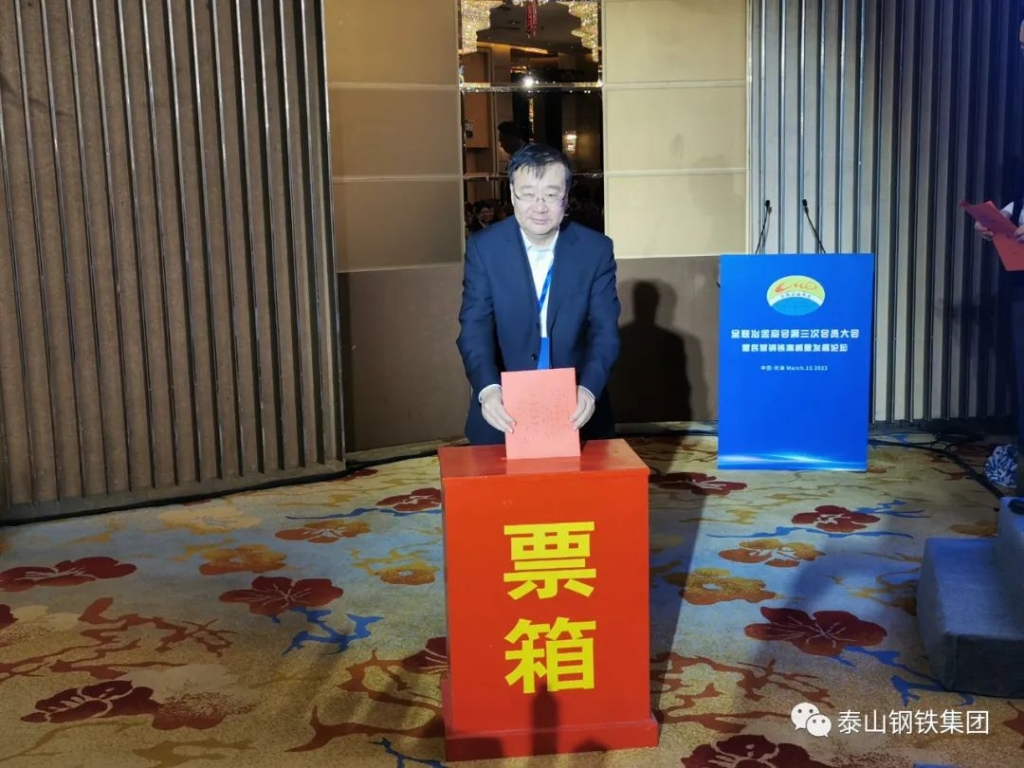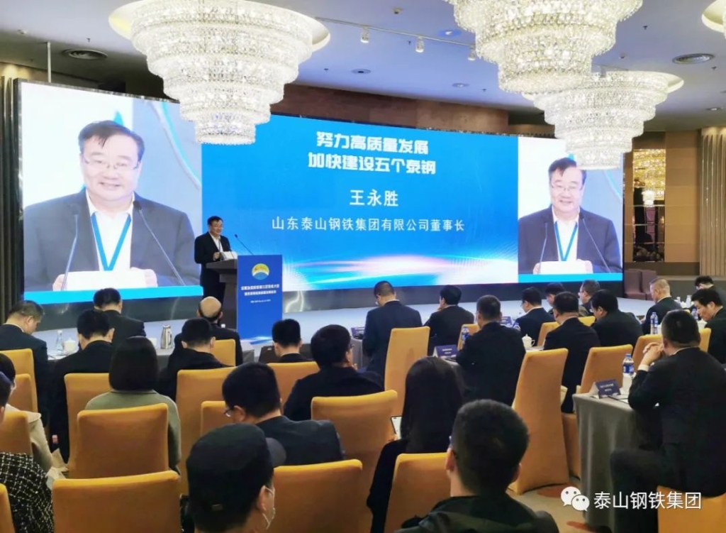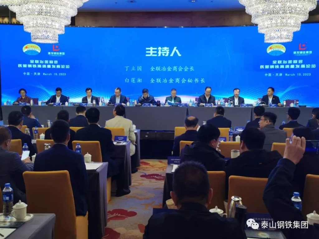 为进一步宣传贯彻党的二十大会议精神,落实中央经济工作会议和“两会”要求,为实现中国式现代化贡献力量,推进钢铁行业高质量新发展,3月15日,全联冶金商会在天津水晶宫饭店召开第三次会员大会暨民营钢铁高质量发展论坛。全联冶金商会会长丁立国,全联冶金商会秘书长白莲湘等领导出席会议。全国人大代表,全联冶金商会副会长,泰山钢铁集团董事长、党委书记王永胜受邀参加会议并在主席台就座。