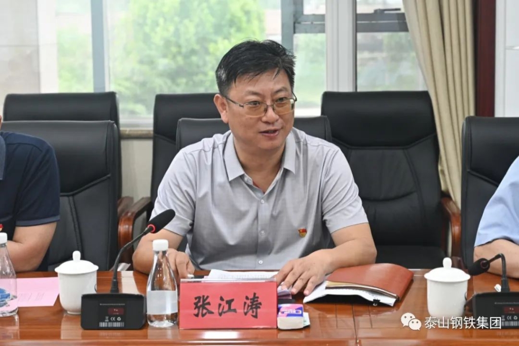 6月16日,济南市检察院党组书记、检察长鲍峰带领济南市检察院党组理论学习中心组成员到泰山钢铁集团开展专题调研学习活动。集团党委书记、董事长王永胜热情接待了鲍峰一行,双方在经贸楼二楼会议室进行座谈交流。