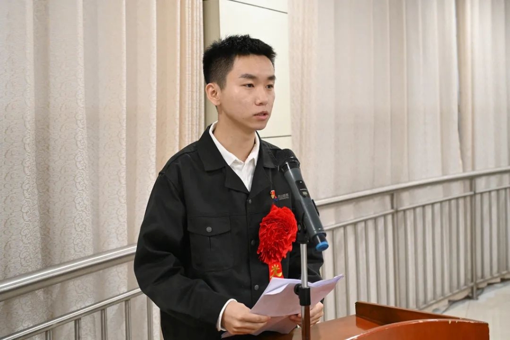 会上,集团不锈钢事业部党支部书记王慧、泰嘉新材料冷退作业区副主管刘明、冷轧部2#1700轧制机组机长胡吉峰、环保部环保管理员侯星兵依次发言。